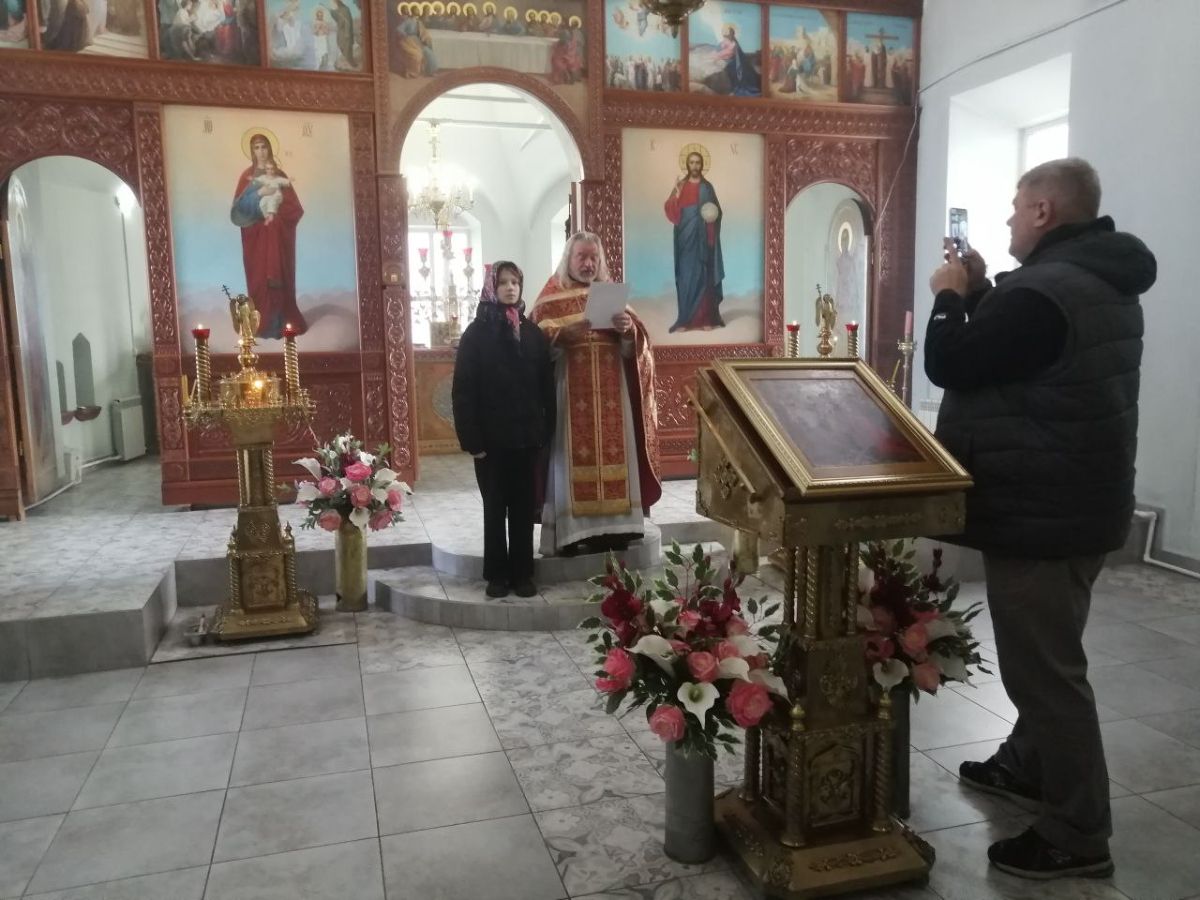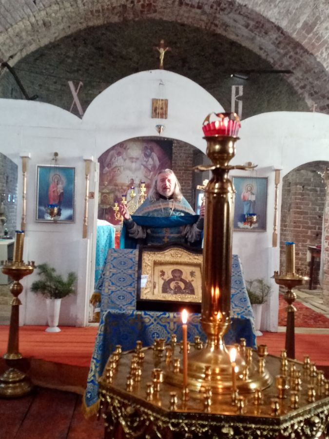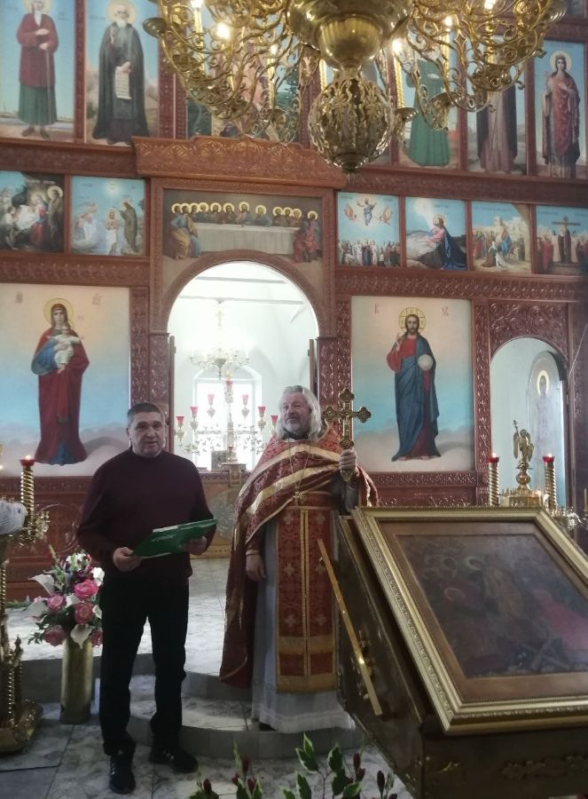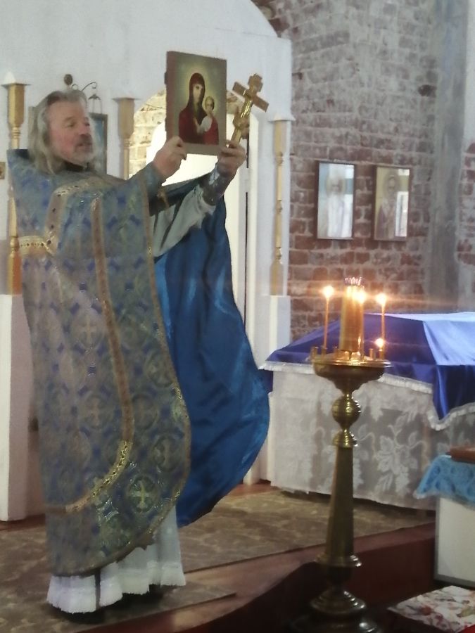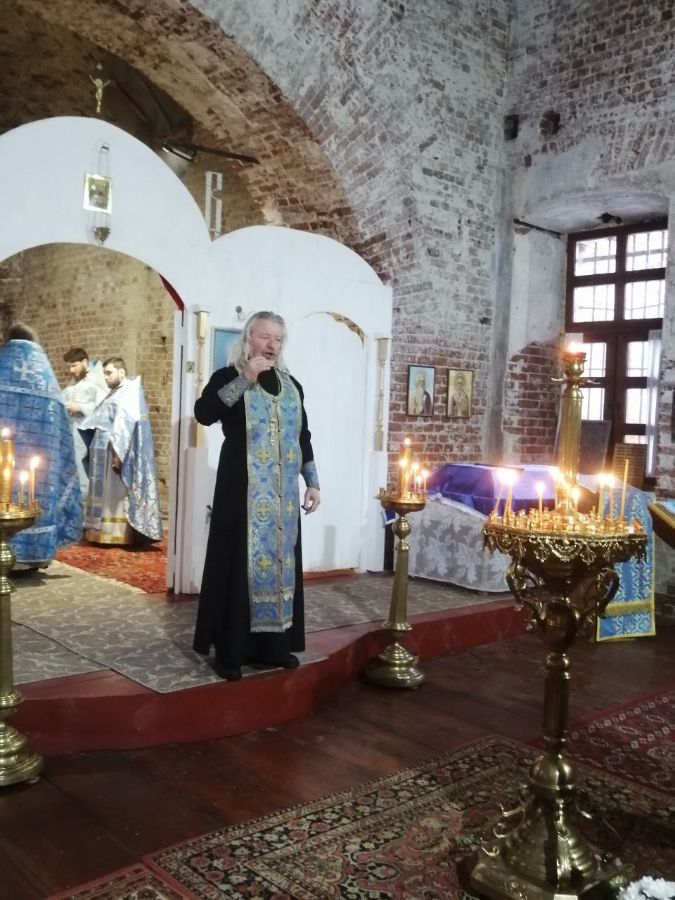 В завершении литургии батюшка обратился к молящимся со словом проповеди в котором поздравил присутствующих с престольным праздником.
