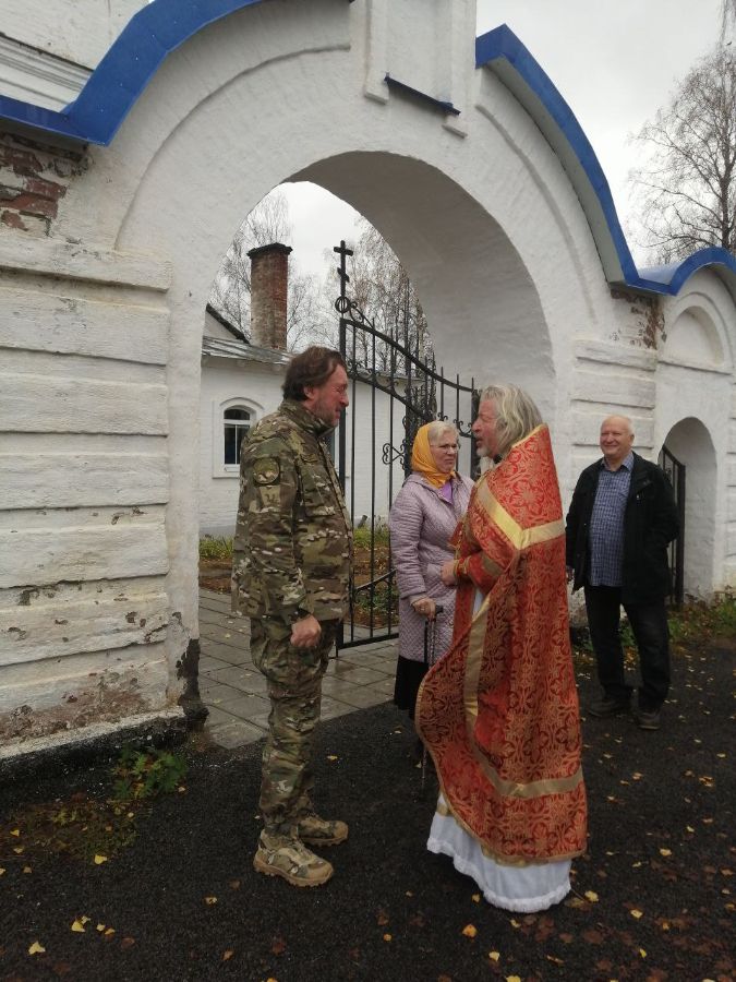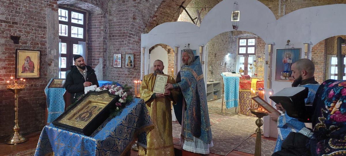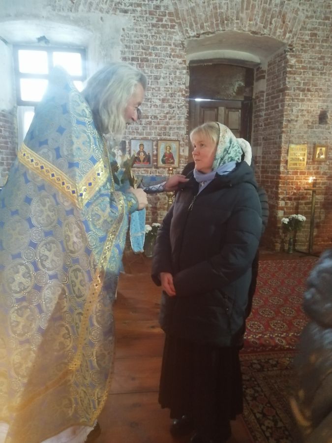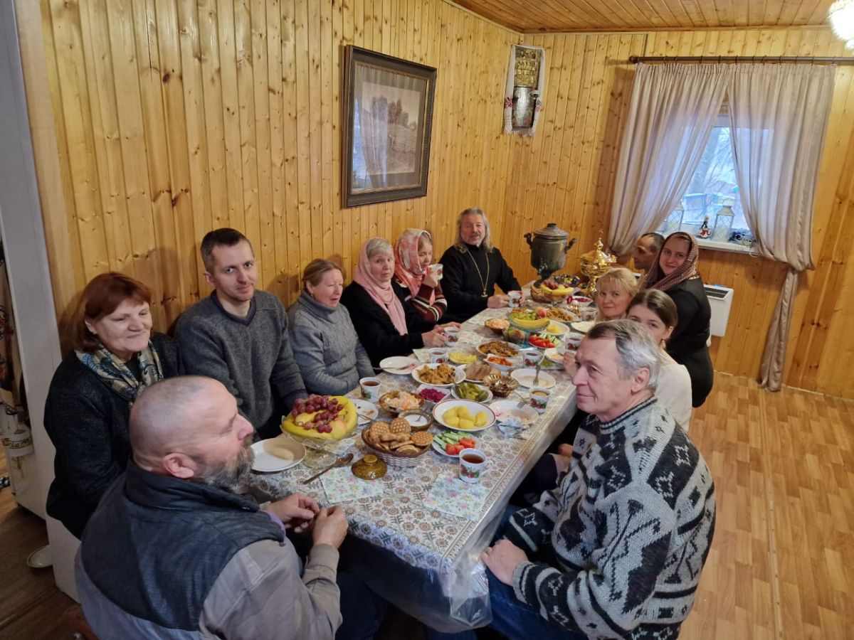 По завершении службы епископ Иннокентий пригласил всех молящихся на трапезу. Во время праздничной трапезы владыка предоставил слово настоятелю Свято-Покровского храма деревни Ельцы и сказал, что теперь протоиерей Олег Истомин будет духовно окормлять приход храма Знамения Божией Матери.