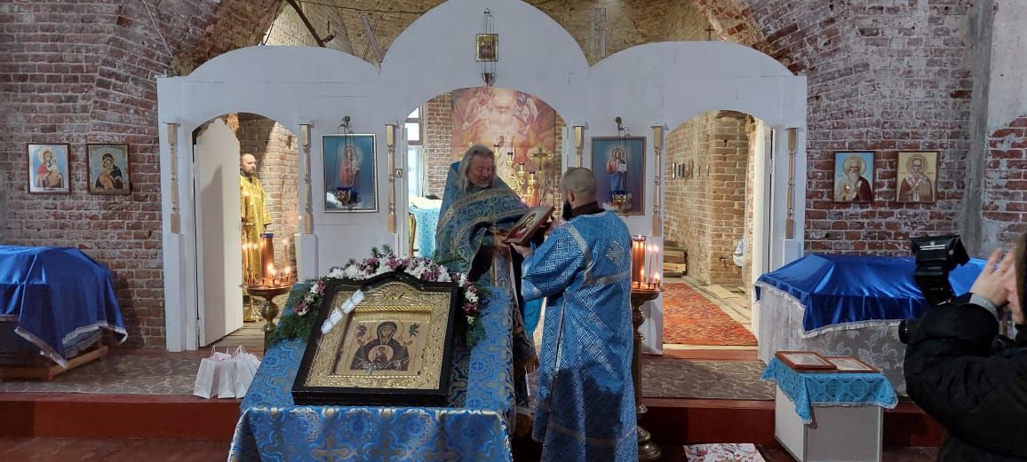 И после уже все вернулись в храм, где перед образом Божией Матери «Знамение», расположенной на главном аналое, священнослужители совершили чин славления. Протоиерей Дмитрий Ершов поздравил верующих с престольным праздником!