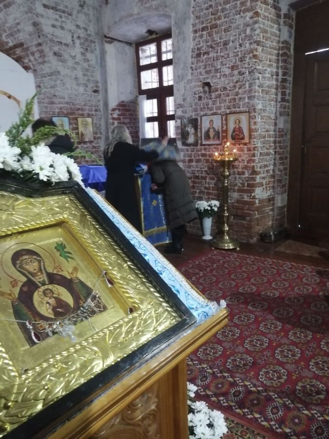 В настоящее время в храме в честь иконы Божией Матери «Знамение» в селе Знаменское совершаются Богослужения. Возглавляет службу настоятель Свято-Покровского храма деревни Ельцы протоиерей Олег Истомин. Храм стал приписным со дня, когда епископ Александровский и Юрьев-Польский Иннокентий посетил его и совершил в нем Всенощное бдение. А было это 16 февраля 2019 года, в субботу седмицы 38-й по Пятидесятнице. По завершении службы епископ Иннокентий пригласил всех молящихся на трапезу. Во время праздничной трапезы владыка предоставил слово настоятелю Свято-Покровского храма деревни Ельцы и сказал, что теперь протоиерей Олег Истомин будет духовно окормлять приход храма Знамения Божией Матери. Нам прихожанам храма Божией Матери деревни Ельцы было приятно, что владыка так достойно представил всем присутствующим протоиерея Олега Истомина. Теплые и добрые слова батюшки тронули за душу сидящих за праздничным столом. Надеемся, что мир и согласие будет царить в приходе села Знаменское и все у них будет хорошо. Уже к вечеру после трапезы в 20.00 час. расходились гости и прихожане, поблагодарив хозяев за вкусные угощения. Я рада, что побывала в субботу на Всенощном бдении, которую совершил Преосвященный Иннокентий, епископ Александровский и Юрьев-Польский вместе с духовенством благочиния в храме Знамения Божией Матери.